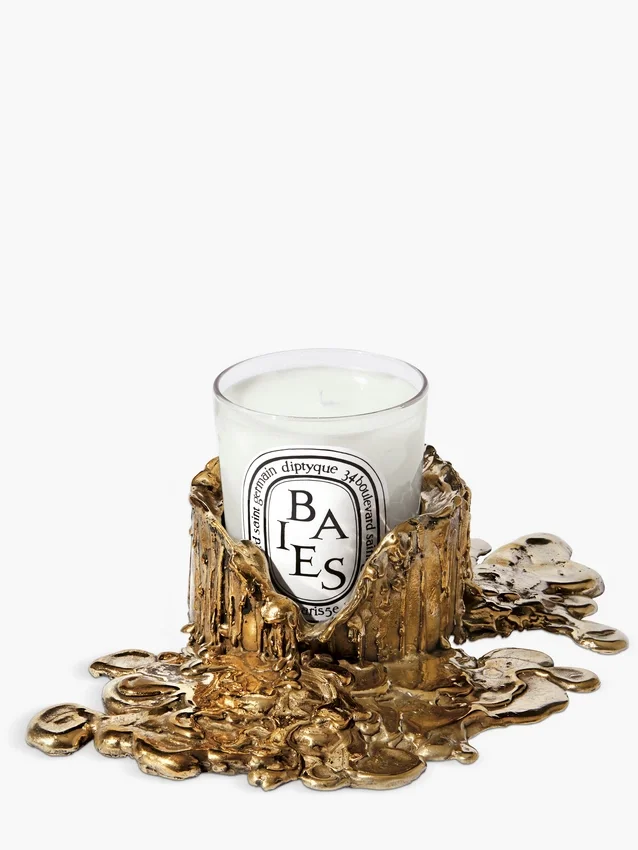 Fabriqué à la main dans une fonderie d’art italienne, ce bougeoir en bronze doré est réalisé selon la technique de moulage à la cire perdue.