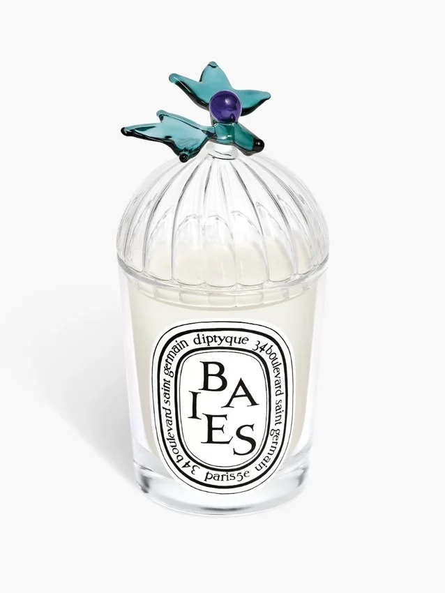 Fabriqué à la main par un maître verrier italien, le couvercle Baies (Berries) habille délicatement les bougies, préservant ses accords fruités et floraux.