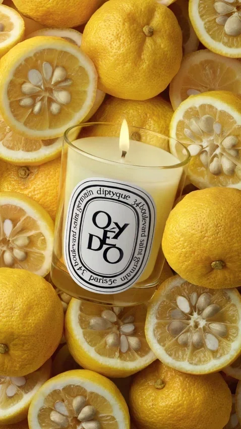 Diptyque, bougie oyado, oyado, Diptyque oyado, bougie, bougie de luxe, bougie parfumée au pamplemousse, bougie parfumée aux notes fruitées, bougie parfumée aux agrumes