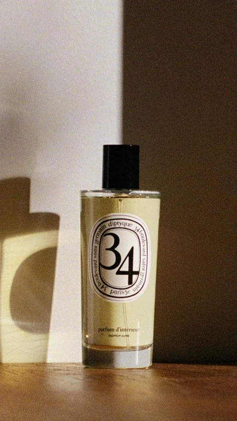 D’un simple geste, le spray d’ambiance 34 Boulevard Saint Germain fait ressortir les notes du parfum signature de Diptyque.