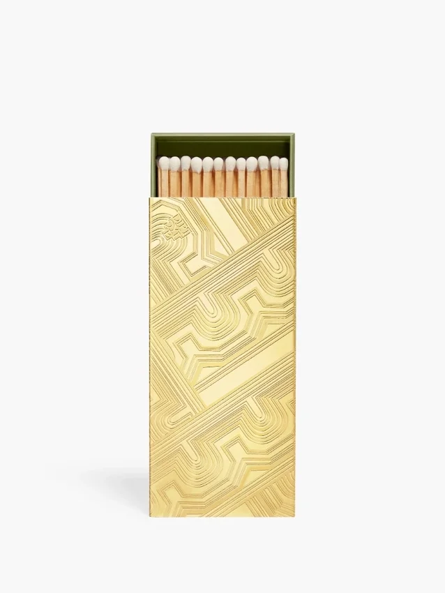 cet étui met élégamment en valeur une boîte d’allumettes. un hommage au motif basile dessiné par christiane gautrot, l’une des trois fondatrices de Diptyque.