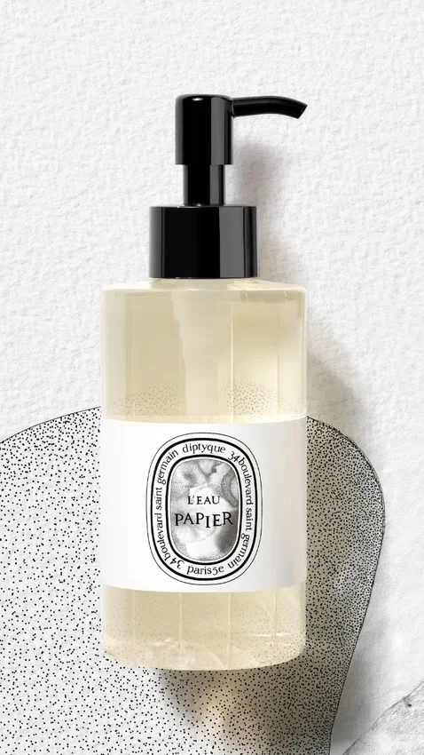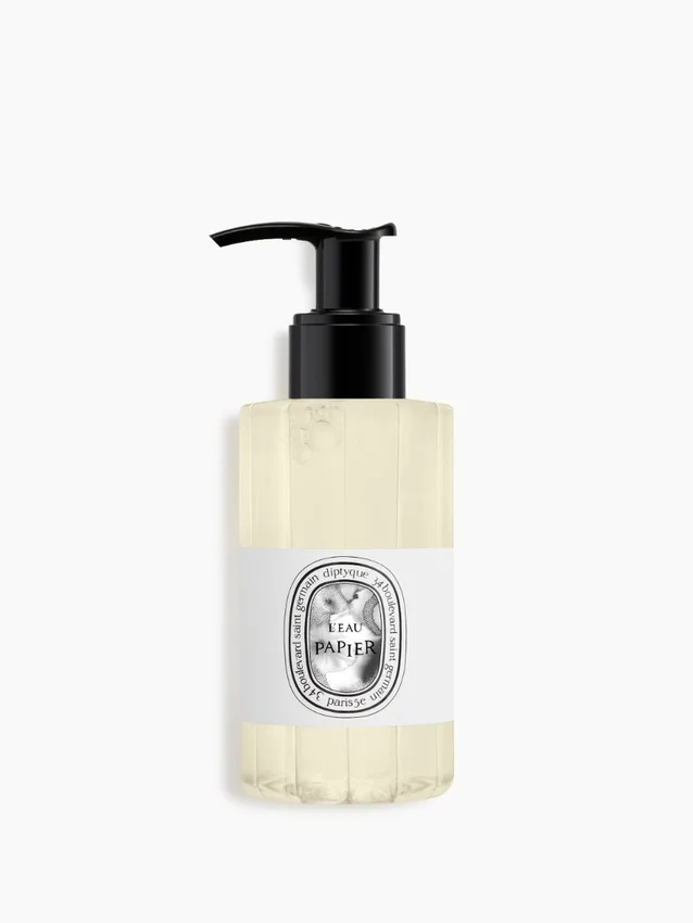 Au contact de l’eau, le gel nettoyant L’Eau Papier se transforme en une mousse légère et soyeuse. Un geste enchanteur aux notes de muscs blancs, de Mimosa et de bois blonds.